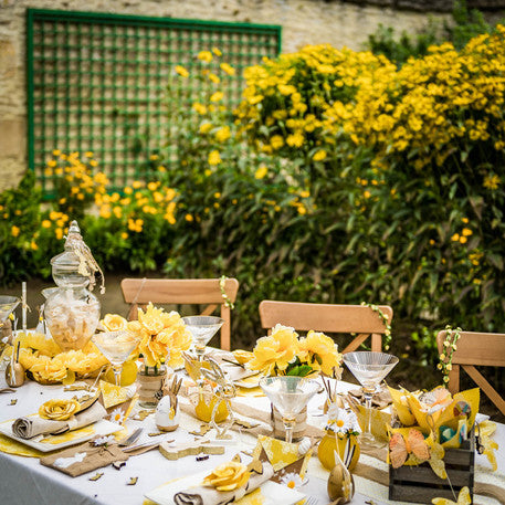 Fleurs sur tige en lin jaune x12