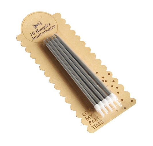 10 Bougies d'anniversaire géantes Métallisé Argent - 15cm