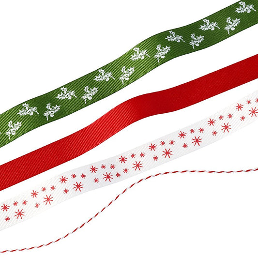 Ficelle et rubans aux motifs de Noël (x4)