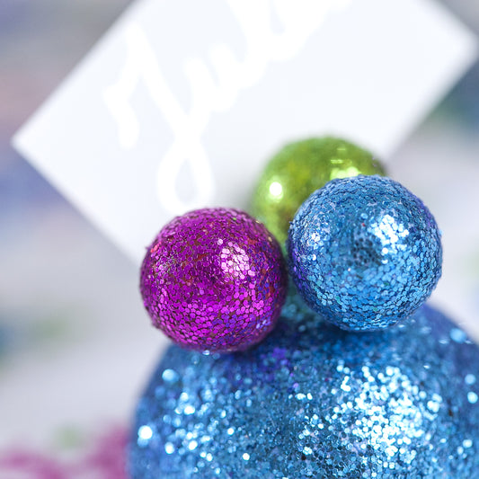 Petites boules argent pailletées sur tiges (x24)