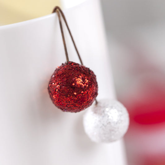 Grosses boules pailletées sur tiges (x6) rouge