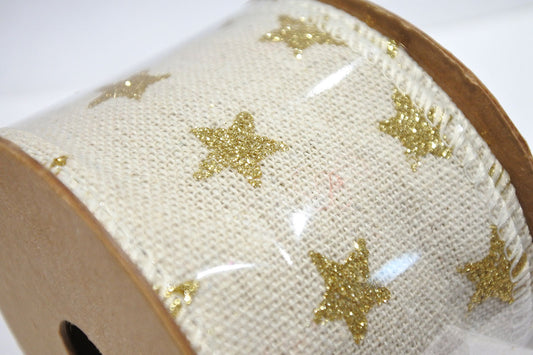 Ruban lin motif étoiles dorées 5 cm x 3 m