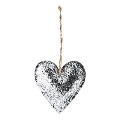 Coeur pailleté argent à suspendre