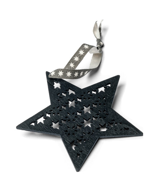 Etoile de Noël en bois noire à suspendre 8 cm