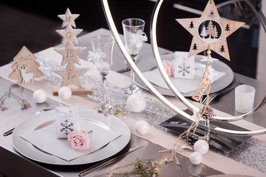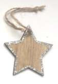 Etoile en bois à suspendre (x4) pailletée argent