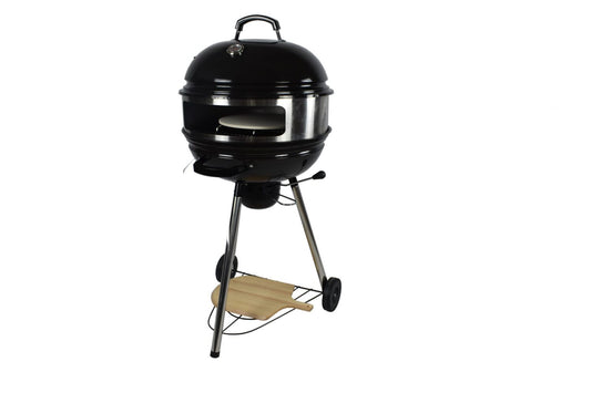 Barbecue à charbon - Purechef - Forme boule avec option four à pizza | 62 x 58 x 122 cm | Noir et acier inoxydable | TRENDYFLAIR