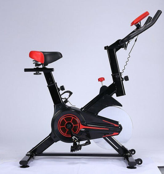 Vélo d'appartement spinning - O’Fitness - Compteur 5 fonctions - Roue d'intertie : 6 Kg | Compact et robuste | Noir et rouge | TRENDYFLAIR