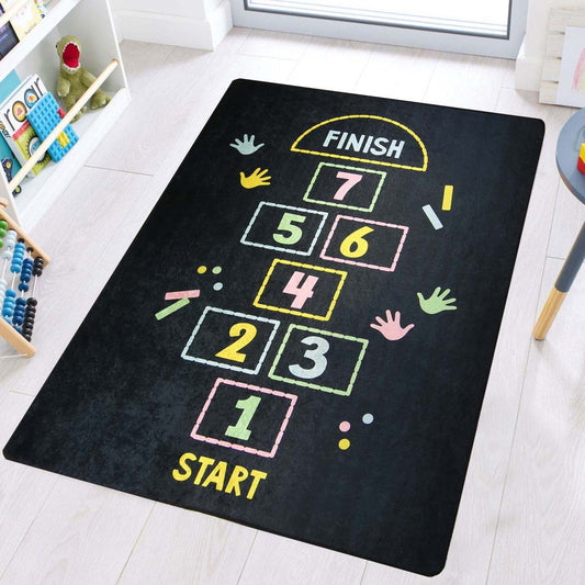 Tapis Enfant Marelle 120 x 160 cm - Noir – Qualité supérieure pour Maison, Appartement, Bureau – Style élégant et durable – Confort optimal, facile à nettoyer – Idéal salon et chambre