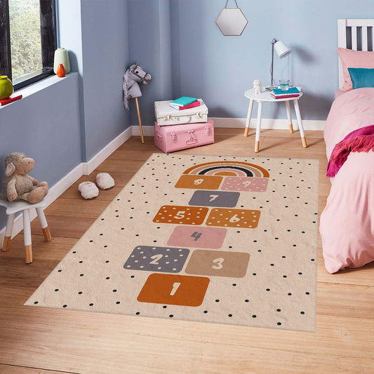 Tapis Enfant Marelle 100 x 150 cm - Beige – Qualité supérieure pour Maison, Appartement, Bureau – Style élégant et durable – Confort optimal, facile à nettoyer – Idéal salon et chambre