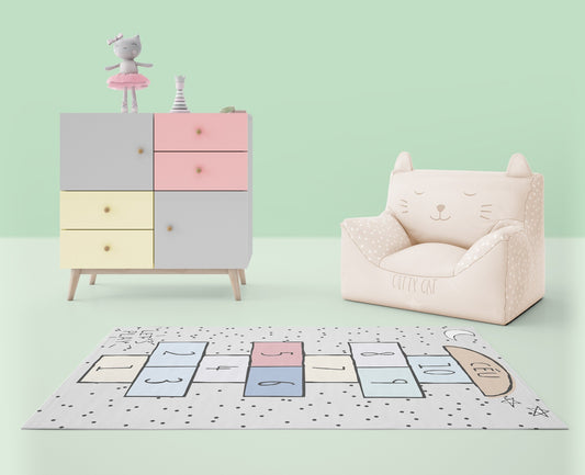 Tapis Enfant Marelle 80 x 150 cm - Gris – Qualité supérieure pour Maison, Appartement, Bureau – Style élégant et durable – Confort optimal, facile à nettoyer – Idéal salon et chambre