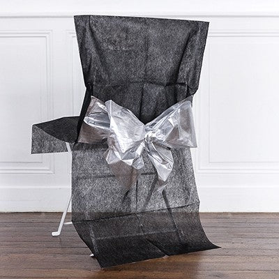 Housse de chaise (x1) avec n?ud métallisé noir / argent