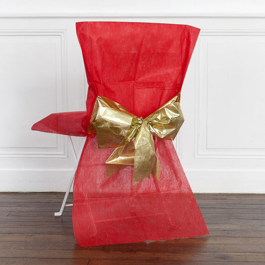 Housses de chaise (x4) avec n?ud métallisé rouge / or