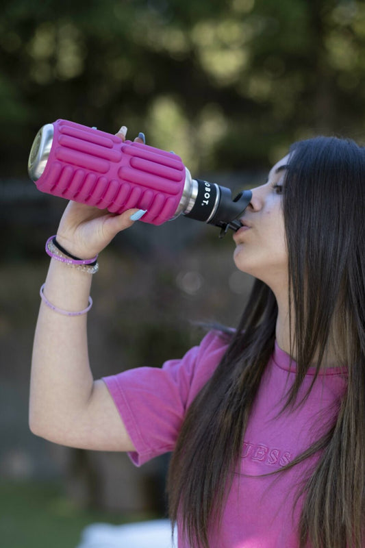 Bouteille de sport - Fonction 2 en 1 rouleau de massage | Pratique et polyvalente | Rouge métal | TRENDYFLAIR