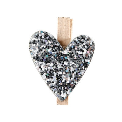 Clips coeur pailletés argent x6