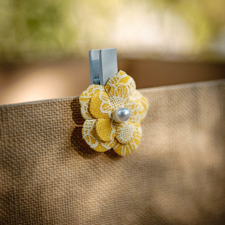 Pinces fleurs en lin jaune x6