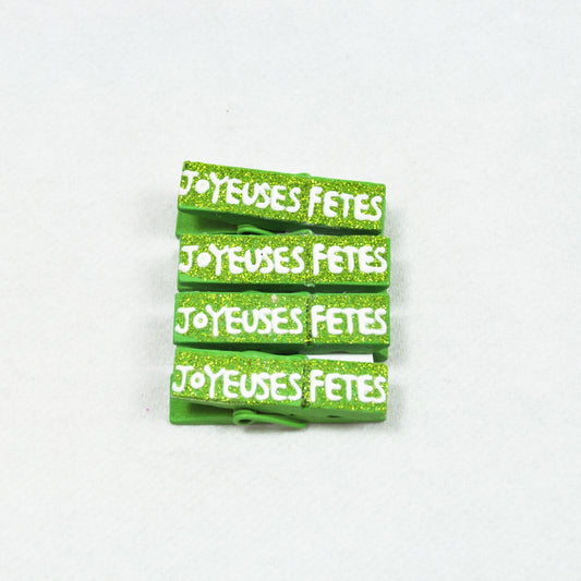 Pinces « Joyeuses fêtes » (x4) vert anis