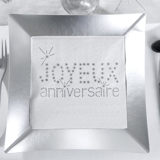 Serviettes Joyeux anniversaire (x20) gris
