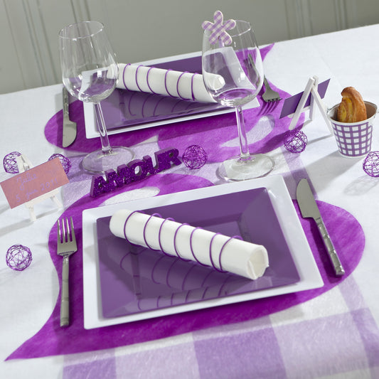 Sets de table coeur en non tissé prune (x50)